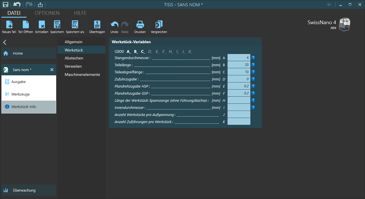 - Möglichkeit, Maschinenvariablen für die Teilesimulation zu definieren